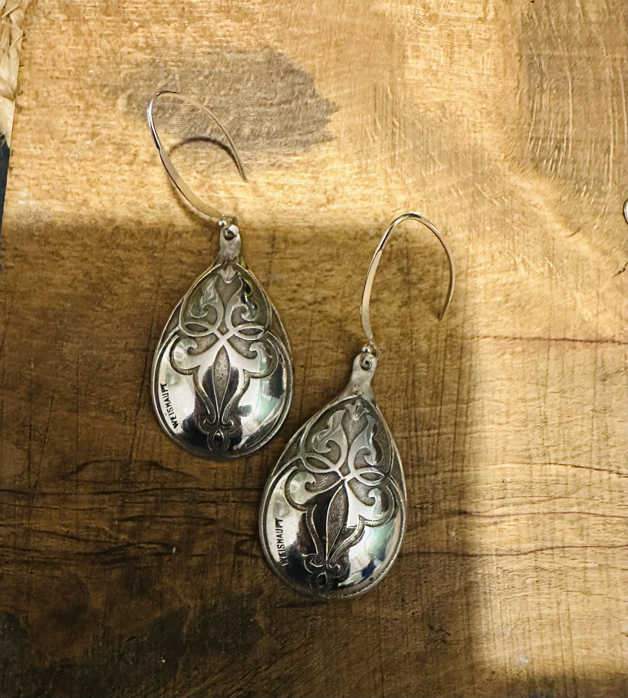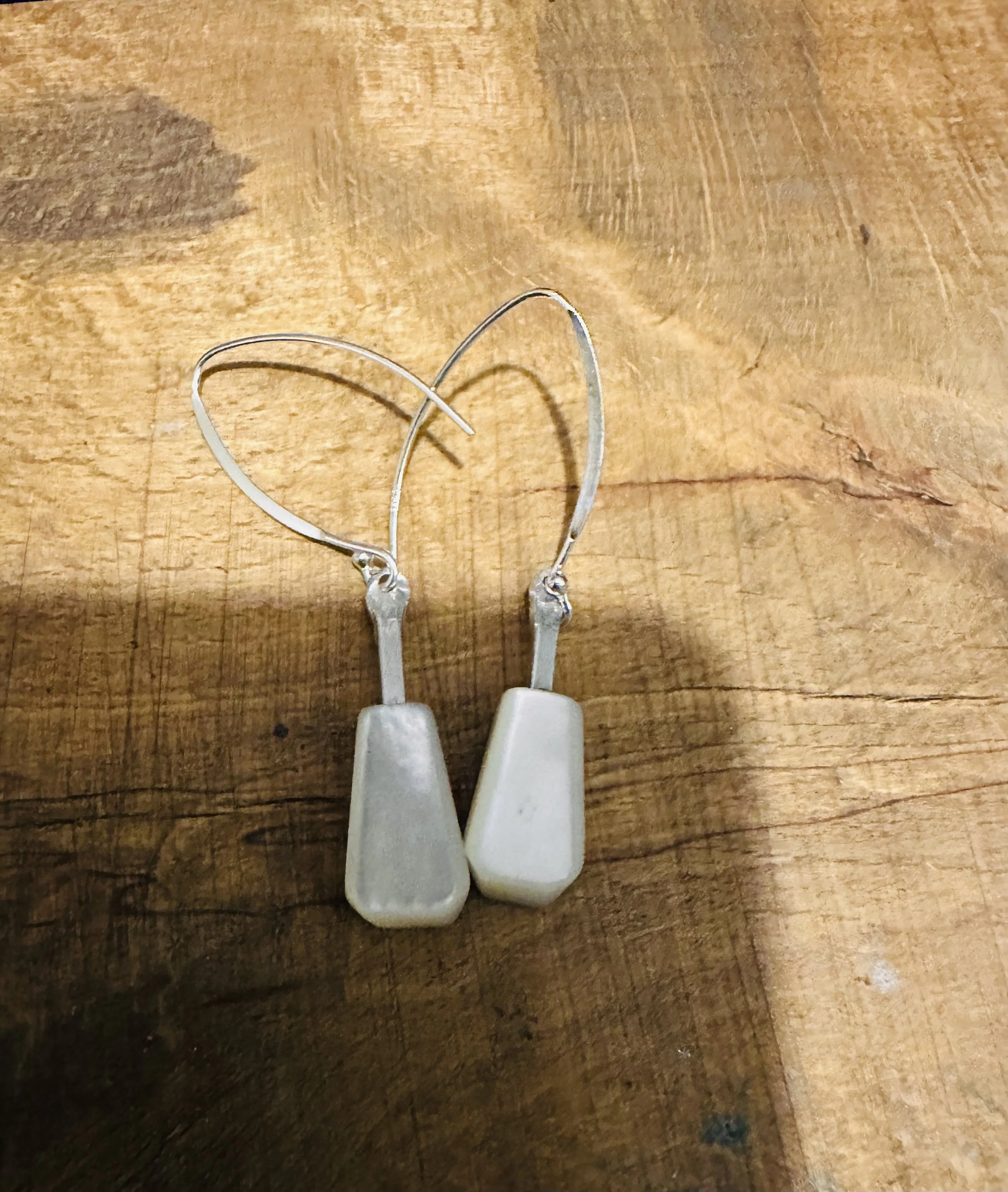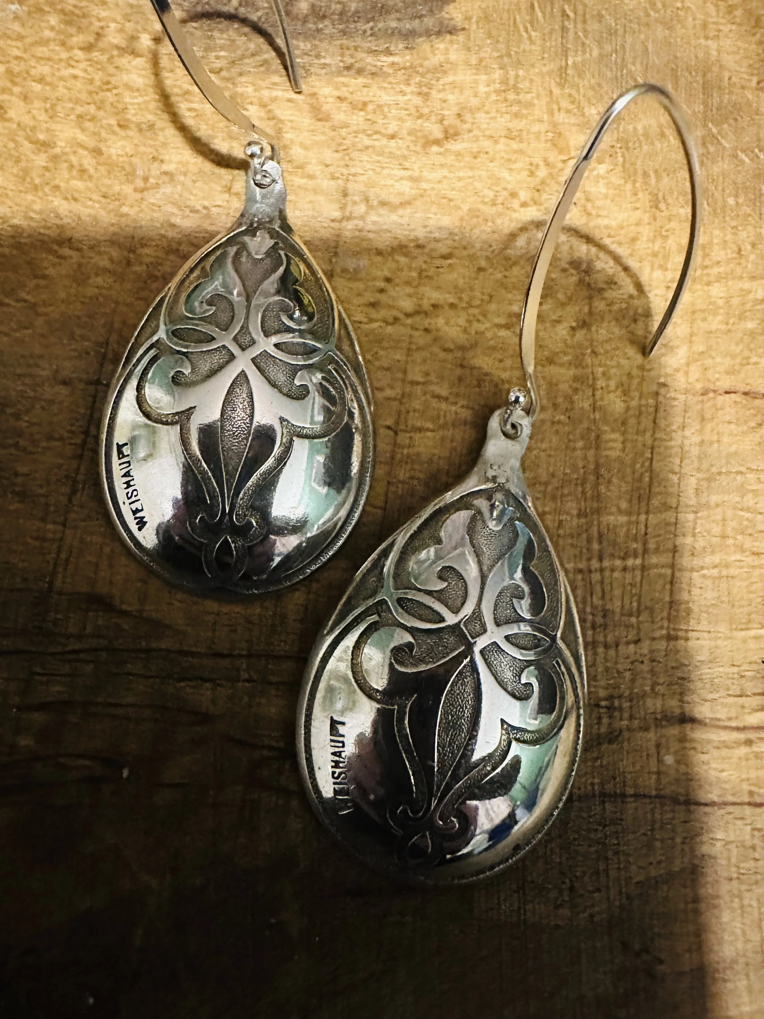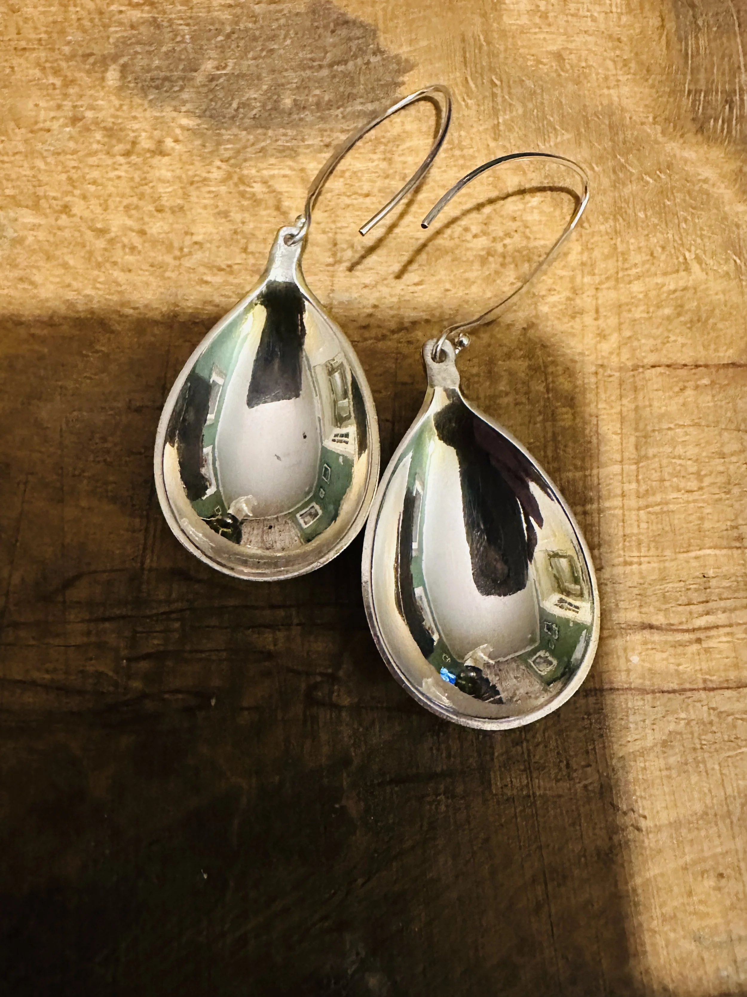 These cute earrings have been handcrafted from silver spoon handles