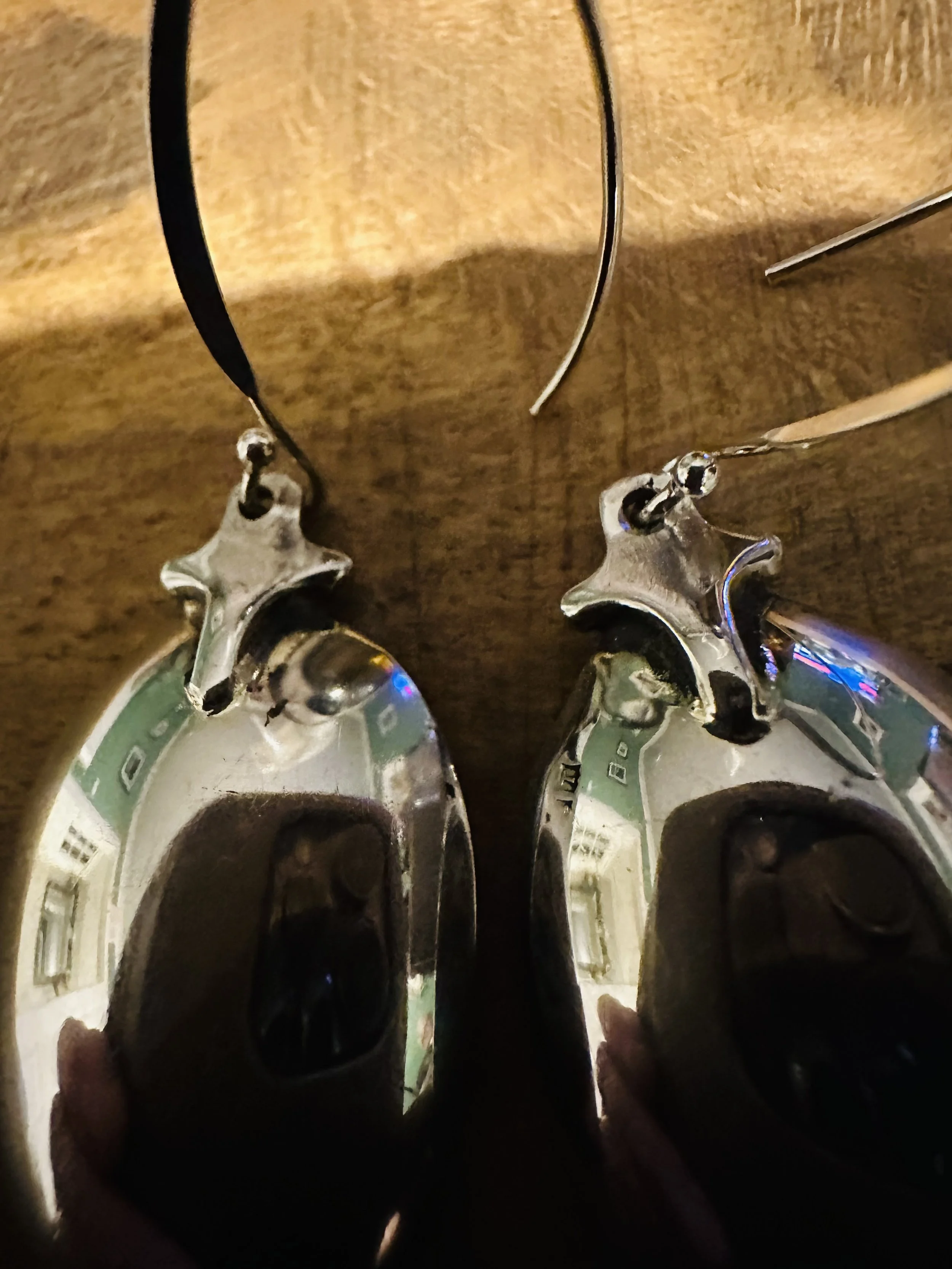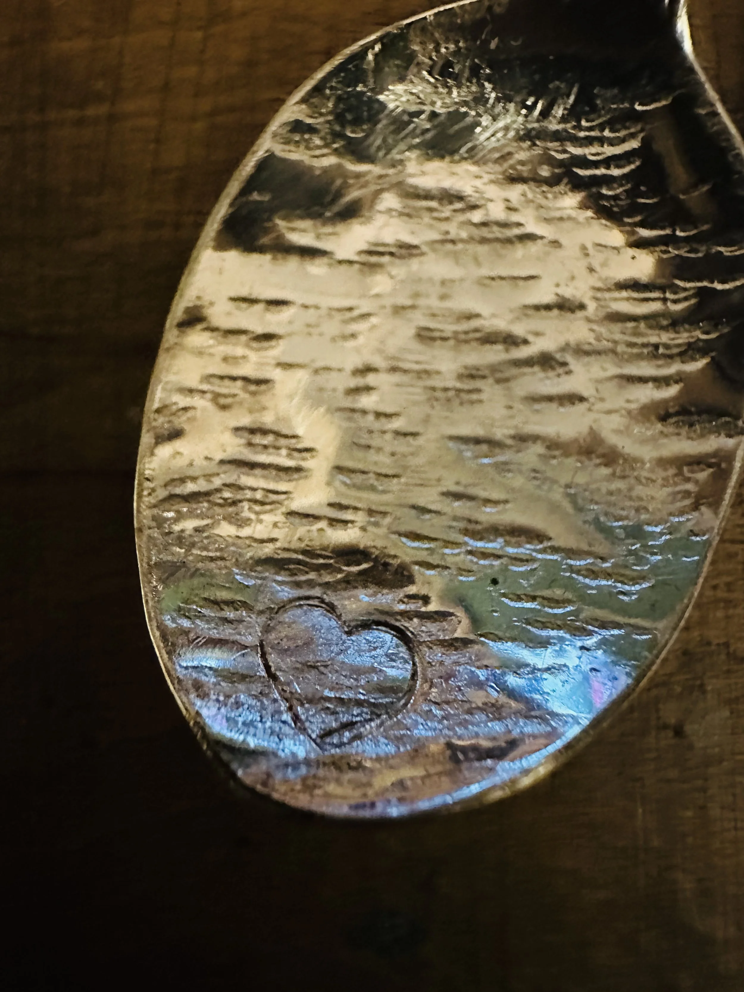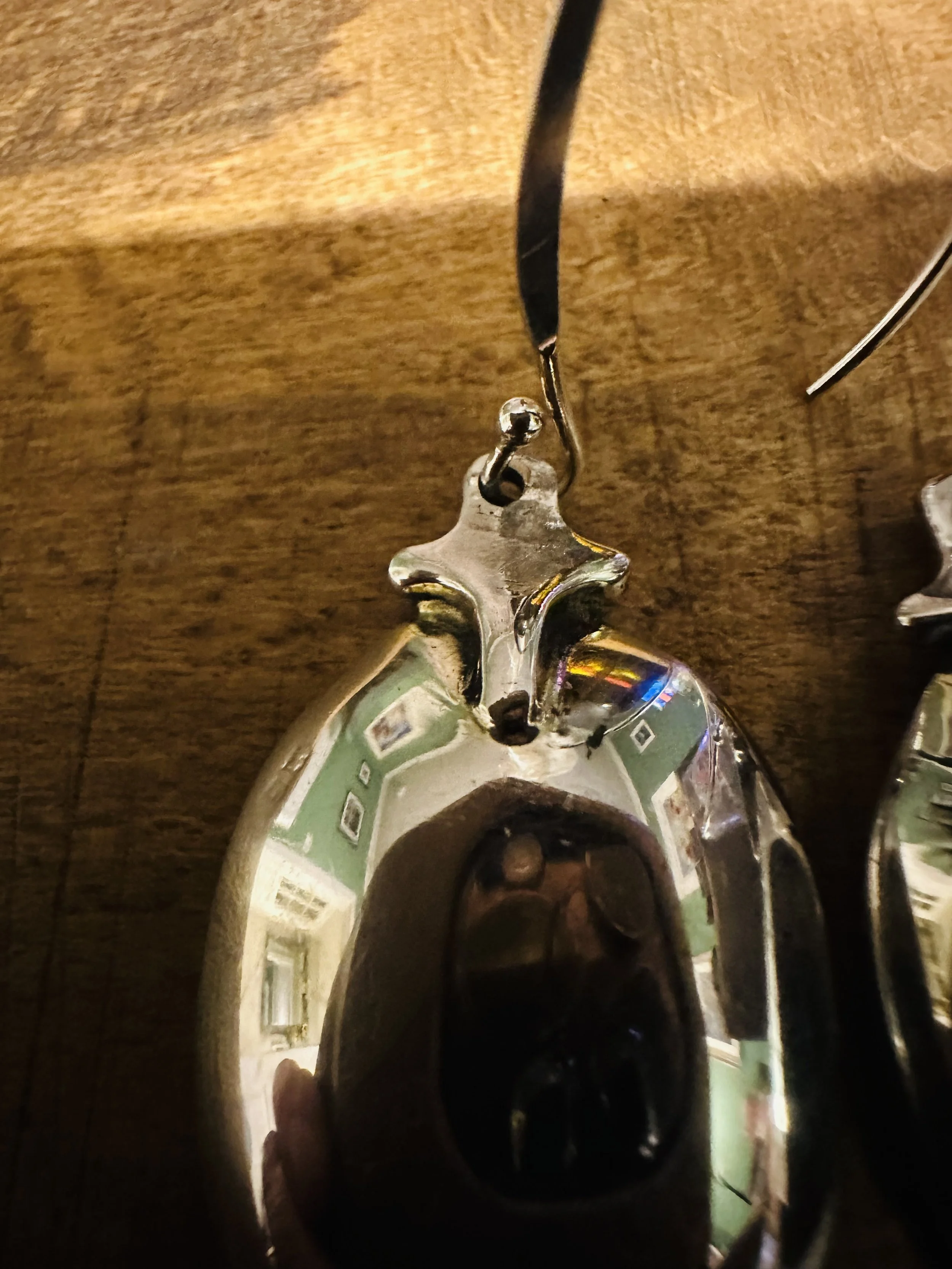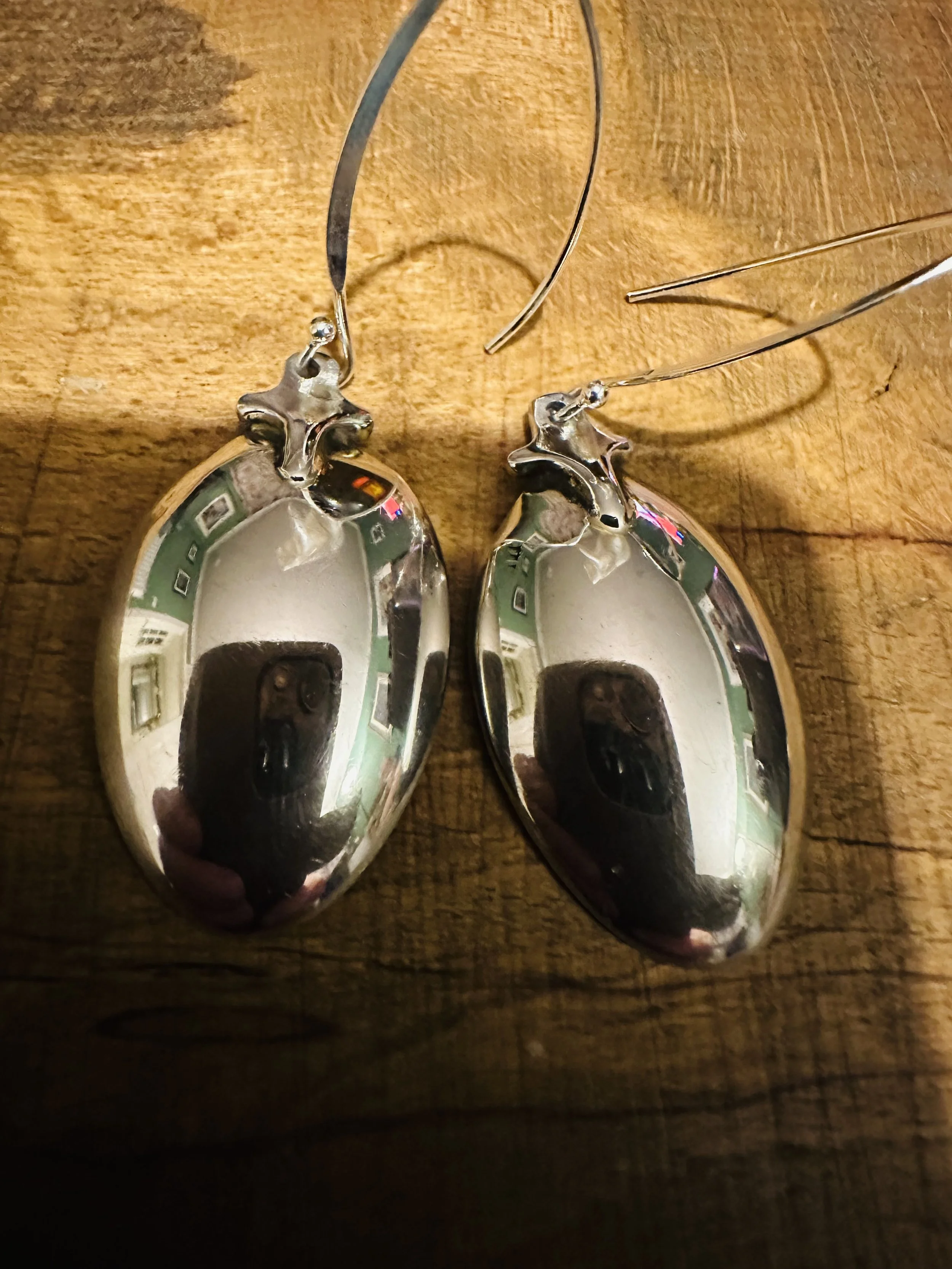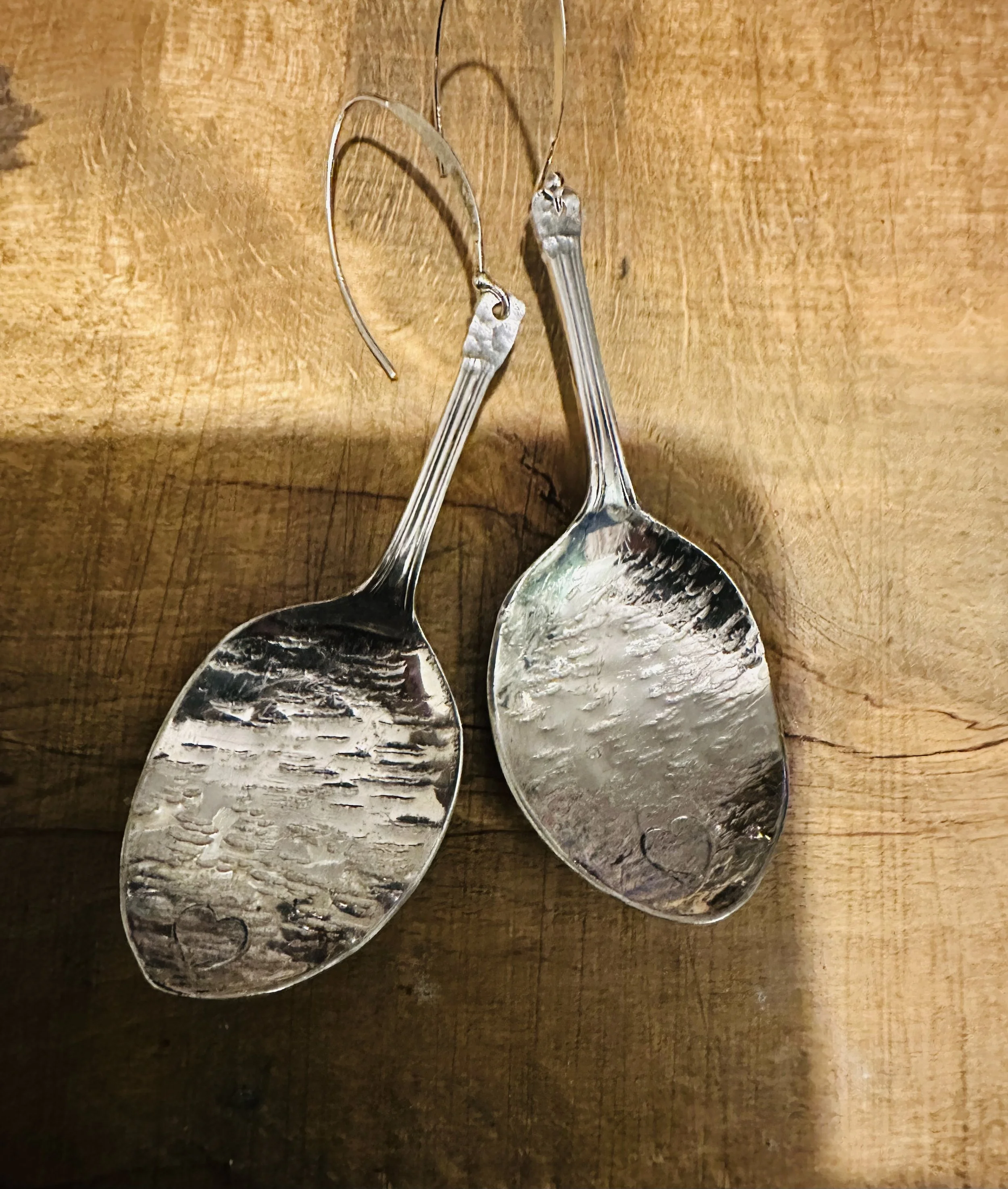 These pretty earrings have been handcrafted from silver spoon handles. They have a lovely design & added plenishing makes them attract the light