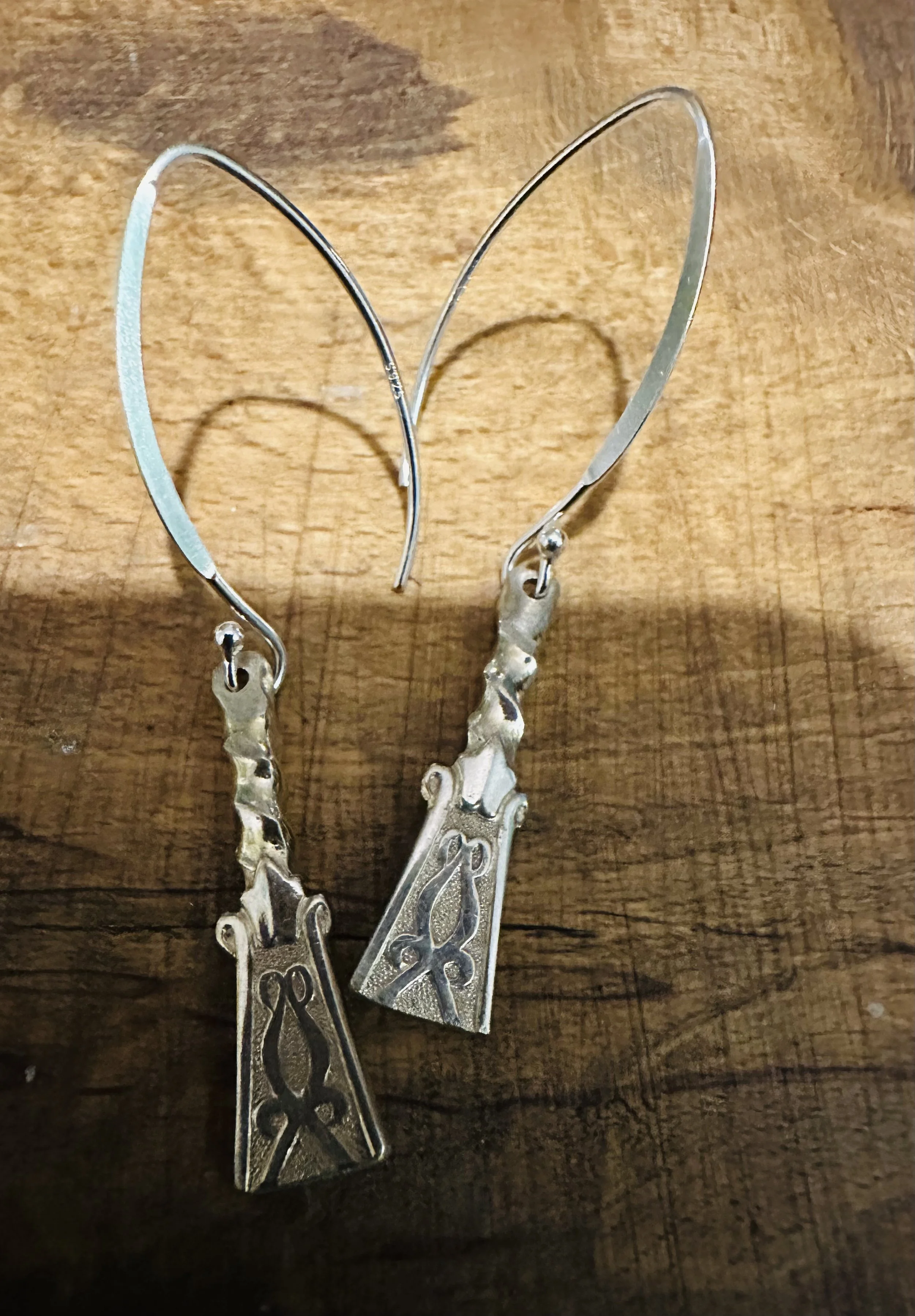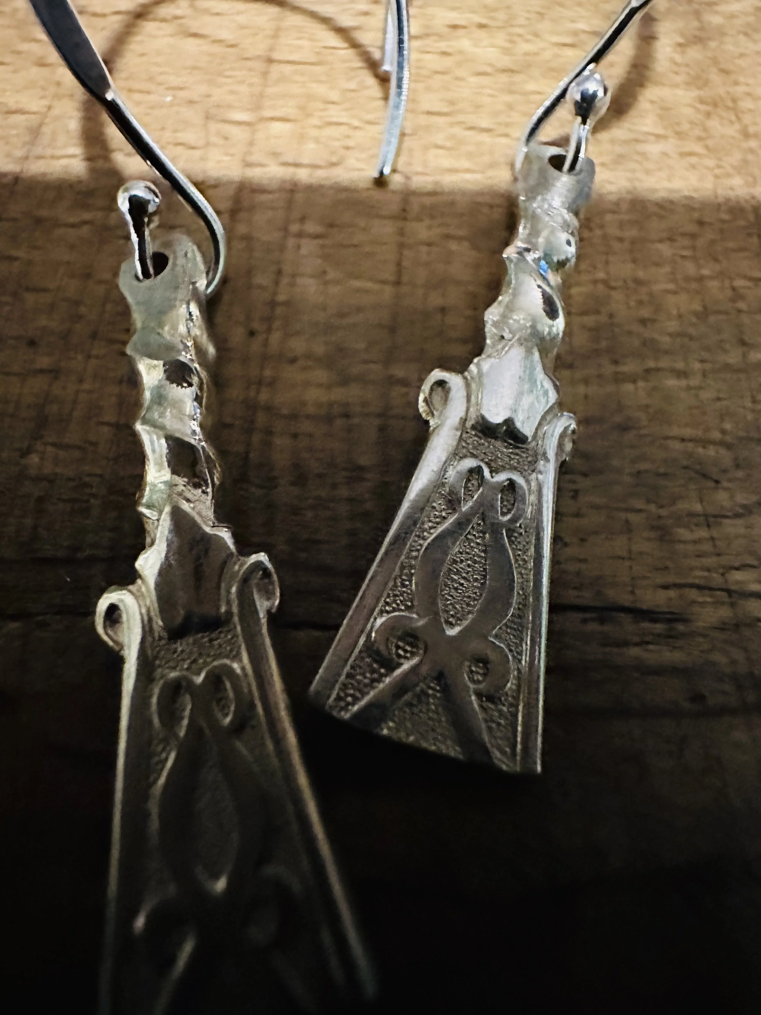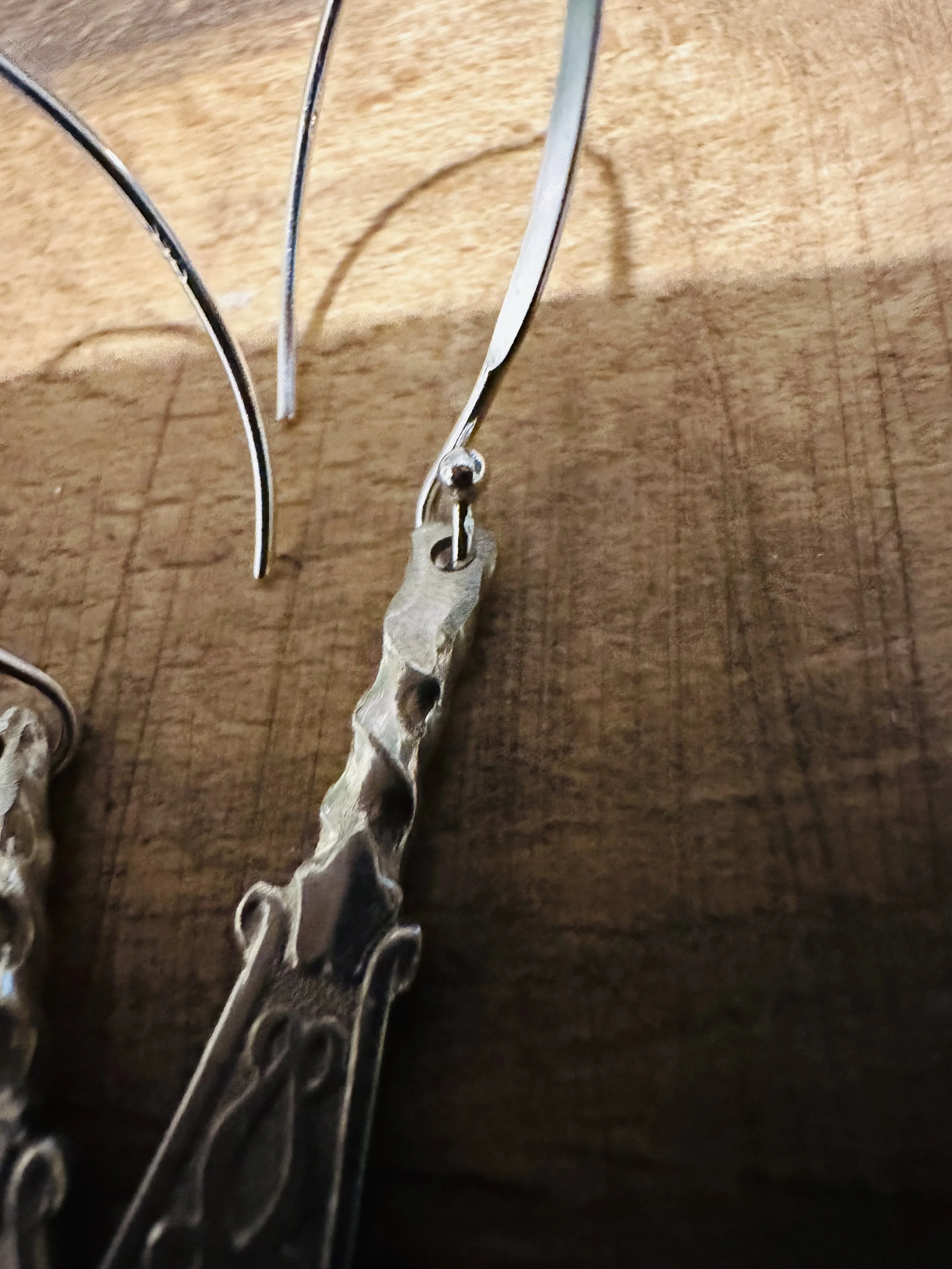 These earrings have been handcrafted from silver spoon handles which give an art deco effect