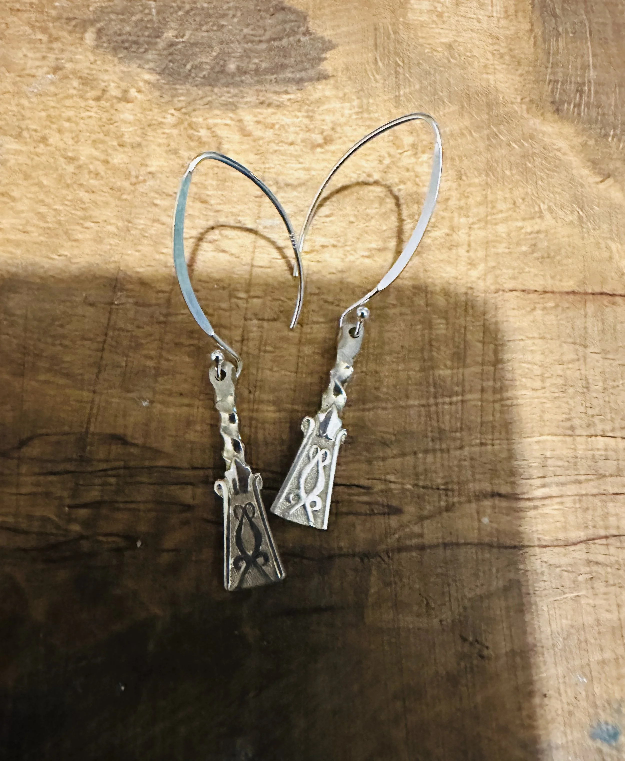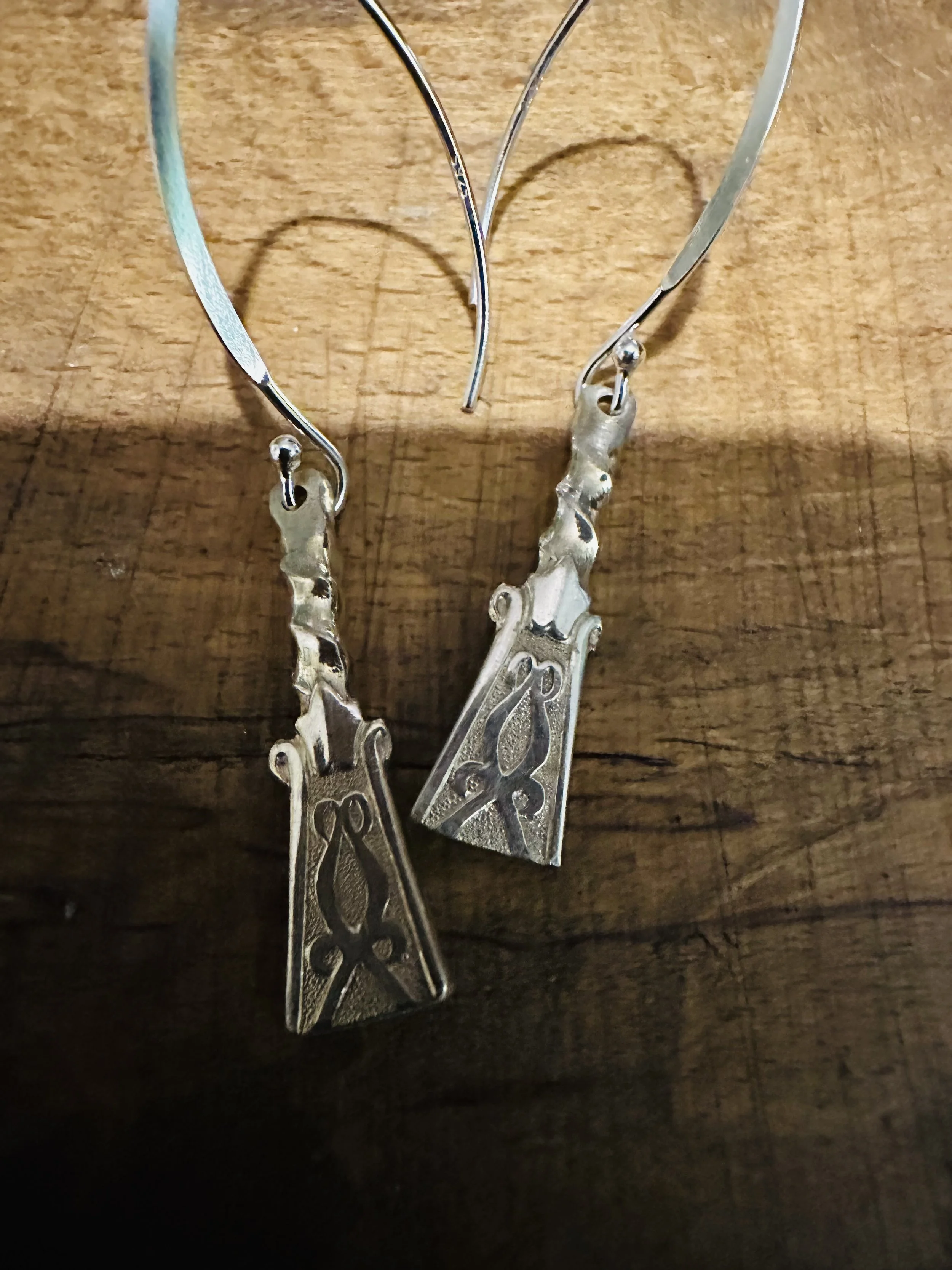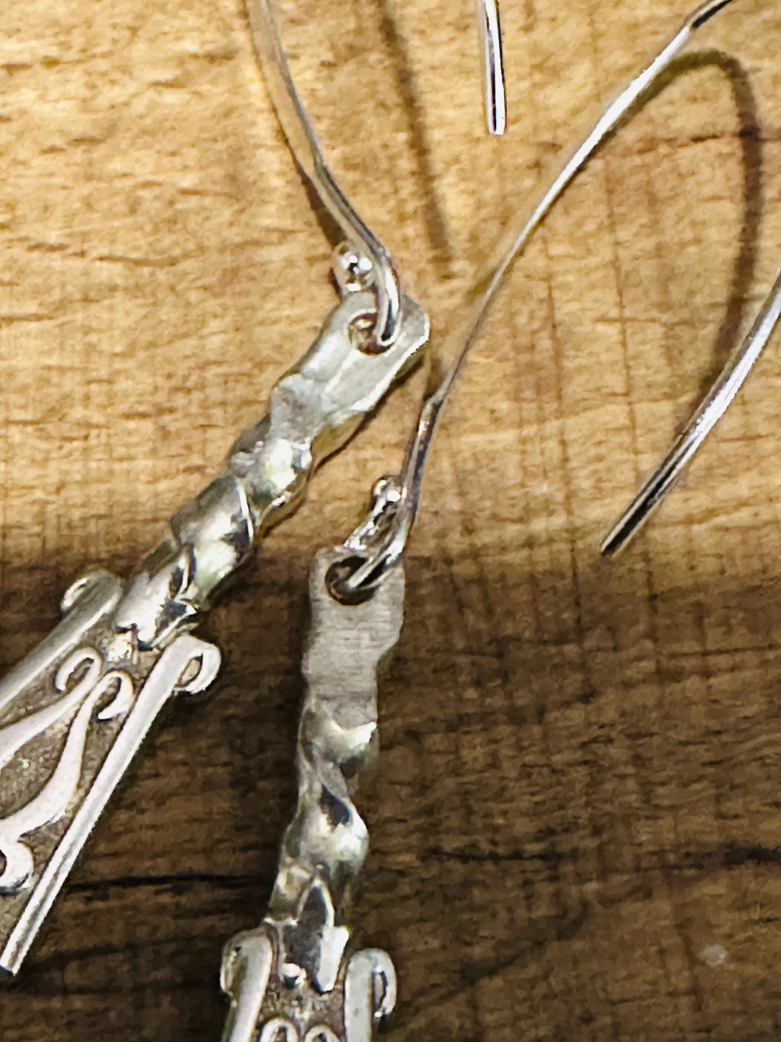 These earrings have been handcrafted from silver spoon handles which give an art deco effect